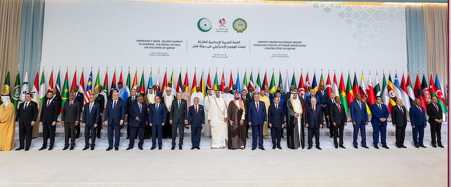 We, the Leaders of States and Governments of the Arab League and the Organization of Islamic Cooperation, meeting today, Monday, 22 Rabi’ Al-Awwal 1447 AH, corresponding to Sep. 15 2025, in the Qatari capital, Doha, at the gracious invitation of HH the Amir Sheikh Tamim bin Hamad Al-Thani, and under his chairmanship, to discuss the Israeli aggression against the State of Qatar and to express our unified stance in condemning it and our full solidarity with the sisterly State of Qatar.